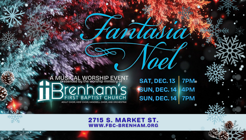 Join us this weekend for Fantasia Noel, a musical worship event presented by the Worship Ministry of Brenham's First Baptist Church.